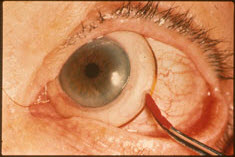 - metoda z wykorzystaniem specjalnego rysika mechanicznie przytwierdzanego do gałki ocznej (nierzadko z zastosowaniem opiatów w roli środków znieczulających podczas operacji przytwierdzania rysika),