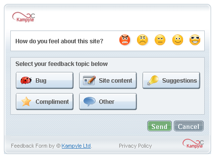 Zbieranie opinii użytkowników o serwisie odbywa się tutaj poprzez krótkie ankiety, które zostają wyświetlone Internaucie po kliknięciu w charakterystyczny odnośnik graficzny znajdujący się na ekranie. Odnośnik ten może zostać umieszczony w wybranym przez właściciela serwisu miejscu. Po kliknięciu weń, użytkownikowi zostaje wyświetlony moduł umożliwiający pozyskanie odpowiednich informacji dotyczących głównie stopnia satysfakcji podczas korzystania ze strony.